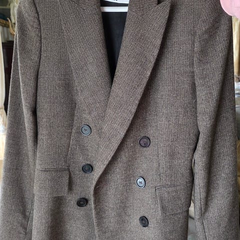 Zara Cropped Blazer i beige farge, størrelse XS. Laget for kvinner, med dobbel knappelukking og klassisk krage. Materiale og detaljer fremgår av produktetiketten.