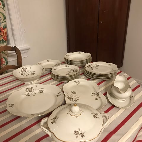 Fint brukt porsgrund service. 8 frokost tallerkner. 3 skåler. Og 7 middagstallerkener, den ene har et liten skår. Den ene frokost tallerken har et bitte lite skår- se bilde.