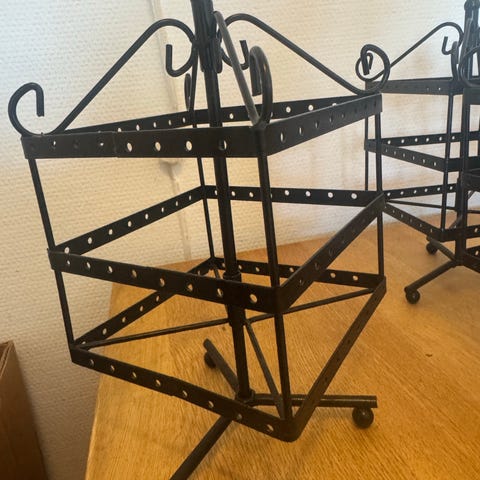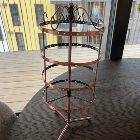Selling Jewelry organiser for earings and necklaces. The earing stand can be rotated and can have 48 earing pairs stored on it. The rpice is 70Nok