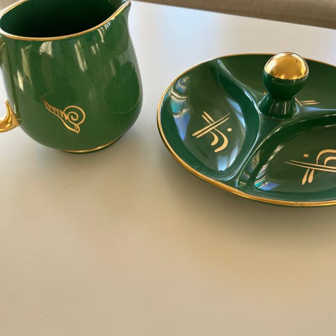 Detaljer: Serviset er laget av flintgods og er håndmalt.