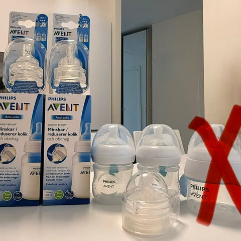 1 Philips avent flaske 125ml, med tilhørende smokketuter i str 2,3 og 5.