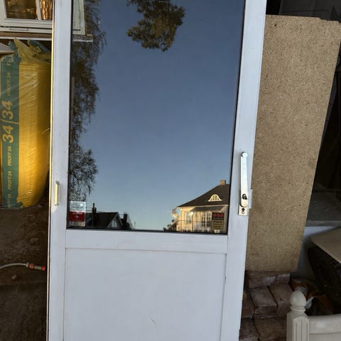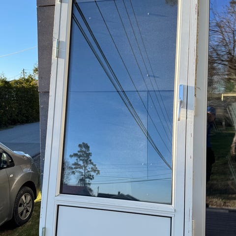 Nordan terrasse dør med katteluka fungerer bra trenger et strøk maling størrelsen er 210X100 brysthøyden er 45 venstre hengsel