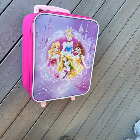 Pent brukt. Brukt en gang. Merker på utsiden av klistrelapp fra flyplassen. Ellers pen og ren innvendig. Hard plast utvendig og godt håndtak med forlenger. Fin å trille for barn fra ca 4-5 til 8-10 år 👍 Selges kr 200,-