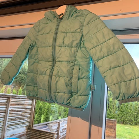 Tynn boblejakke. Fargen er mest riktig på bildet som viser størrelsen.