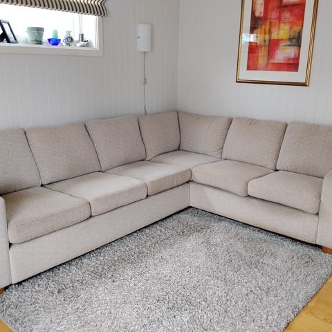 Sofaen er pent brukt, uten skader og er svært lett å holde ren.