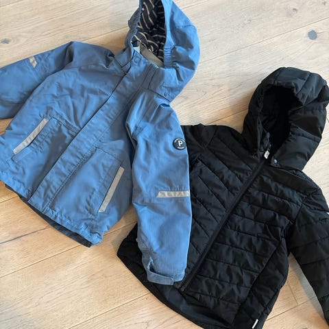 To jakker selges samlet. Begge fremstår som nye.