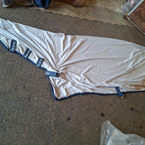Bucas Competition Cooler i marineblå farge, størrelse 145 cm. Laget av pustende materiale for å holde hesten komfortabel etter trening eller konkurranse. Designet for å beskytte og hjelpe til med nedkjøling av hesten.