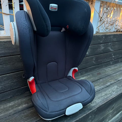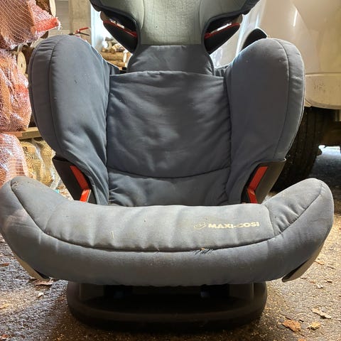 Bilstol. Ryggen kan lett framonteres og stolen kan brukes som bilpute.