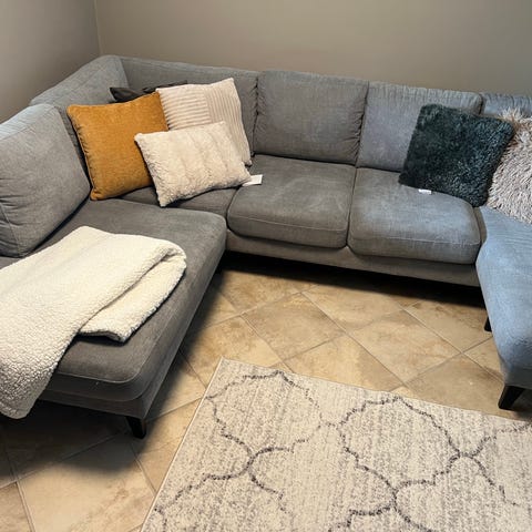Selger vår pene beige sofa som ble kjøpt juli 24. Ingen synlige merker, ikke dyr eller røyk. har en farge som passer til det meste. Nypris var 27.000.