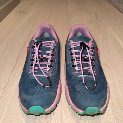 Gode tursko i Gore-tex fra ALFA, med Vibram-såle. Brukt på 2-3 turer i skogen, men litt for smale for meg som har bred fot.