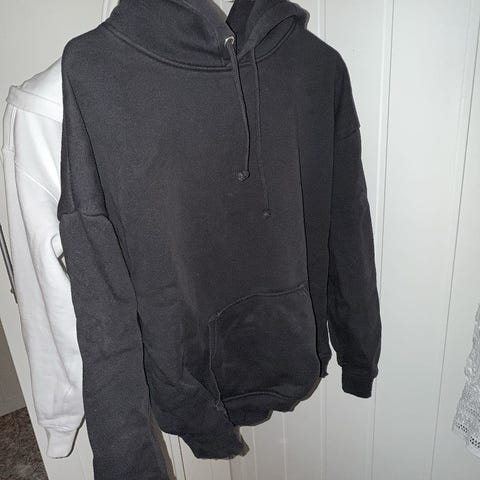 Mørkeblå hettegenser fra Bikbok selges da jeg rydder i skapet. Genseren har to flekker foran som ikke går vekk i vask, men ellers er den fin😊