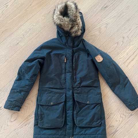 Varm parkas til dame, fin passform. Avtagbar pels på hette. Varmt fleecefór i hette og lommer. Snøring i hette, midje og nede.