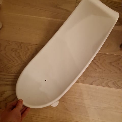 Støtte til bading av spedbarn. Passer i stokke sammenleggbart badekar ved å feste det på kanten.