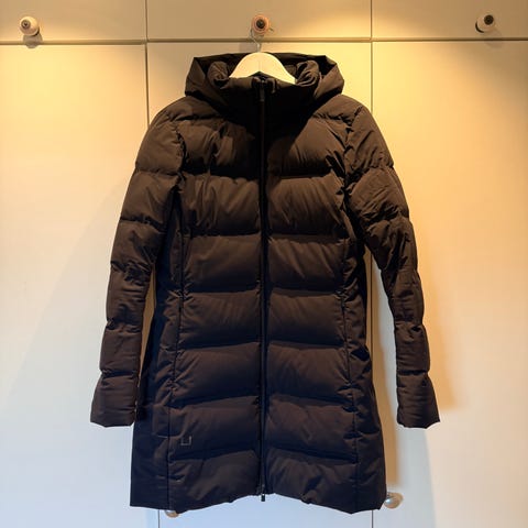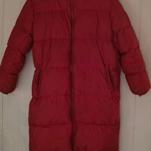 Jakken ble kjøpt brukt for kr 1000, og lite brukt av oss pga ble fort for lite. Den fremstår som meget pen, men har noen merker på ermer og ved lommene som vises i rett lys. Veldig fin passform, god og varm.