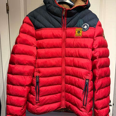 Selger en råkul og sjelden Napapijri pufferjakke i størrelse XXL. Jakken har en iøynefallende oransje utside med kontrastfarget blå innside – perfekt for deg som vil holde varmen og samtidig skille deg ut!