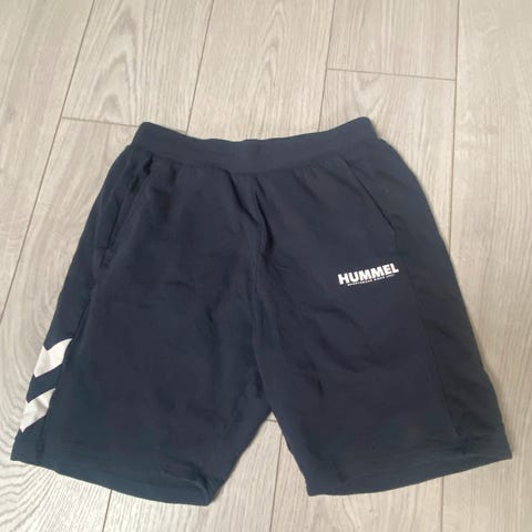 Hummel grå shorts i størrelse S for menn. Laget av mykt materiale med elastisk midje og glidelåslommer. Egnet til fritidsbruk og trening.