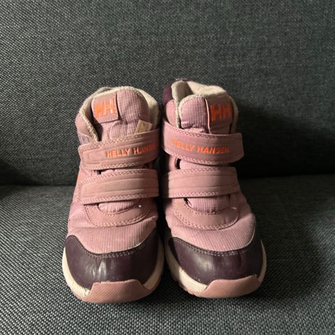 Helly Hansen barne vinterstøvler i størrelse 29, designet for gutter. Støvlene har en kombinasjon av blått og svart materiale, med borrelåslukking for enkel tilpasning. Sålen har godt mønster for grep, og støvlene er laget for å holde føttene varme og tørre i kalde værforhold.