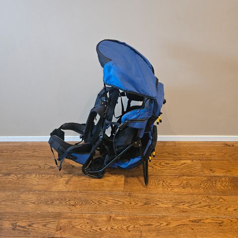 Godt brukt, men disse er solide, så mye liv igjen. Komplett med seteinnlegg for de minste barna. God bæremeis med rom for turklær og niste. Fin to-tonet grønn.