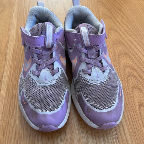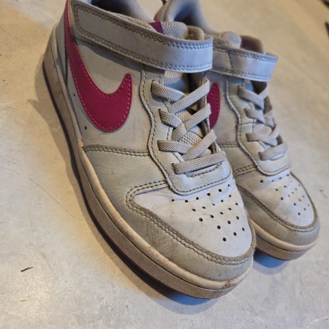 Nike joggesko for jente i størrelse 33. Skoene har en svart base med rosa detaljer og er laget av syntetiske materialer. Egnet for daglig bruk og fritidsaktiviteter.