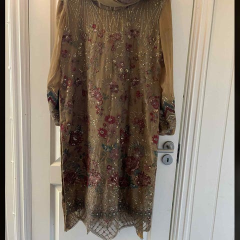 Følger med kurta, bukse og dubatta (slør)