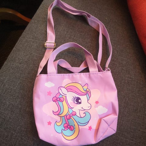 Lite brukt liten veske som kan åpnes med 2 små dukker