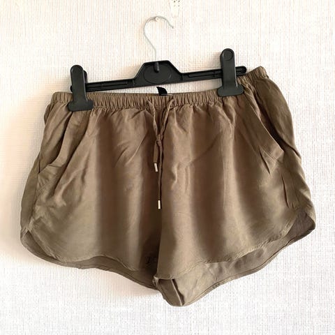 Lite og pent svart brukt shorts fra H&M. Sidelommer og baklommer med knapp. 40 cm rett over i linningen. 64% polyester, 34% rayon, 2% spandex.