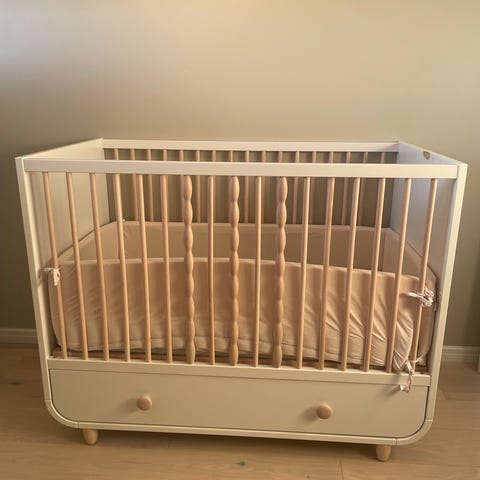 IKEA Sprinkelseng barnebed laget i tre. Egnet for små barn, med spiler som gir sikkerhet og ventilasjon. Passer til standard madrassstørrelse for sprinkelseng.