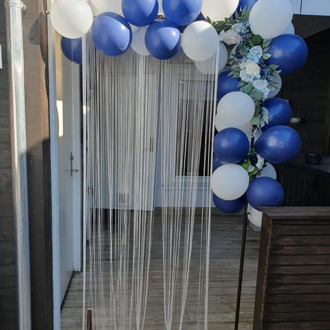 Se egen annonse for ballongbue/metallbue i gull. Leier også ut LED-lenke for å feste over duken.