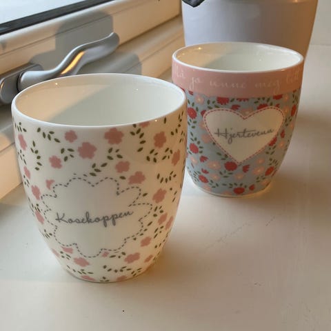 To krus fra Songvaar, Hjertevenn og Kosekoppen, selges samlet.