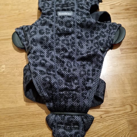 BabyBjörn Bæresele i svart mesh-materiale. Passer for babyer med vekt opptil 12 kg og høyde opptil 85 cm. Justerbare stropper for optimal tilpasning. Designet for å gi komfort og støtte ved bæring av baby. Materialet består av 100% polyester og er maskinvaskbart.