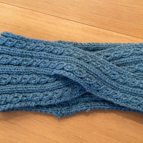 Hjemmestrikket blå pannebånd 💙