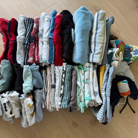 Klespakke bestående av flere plagg i størrelse 62.