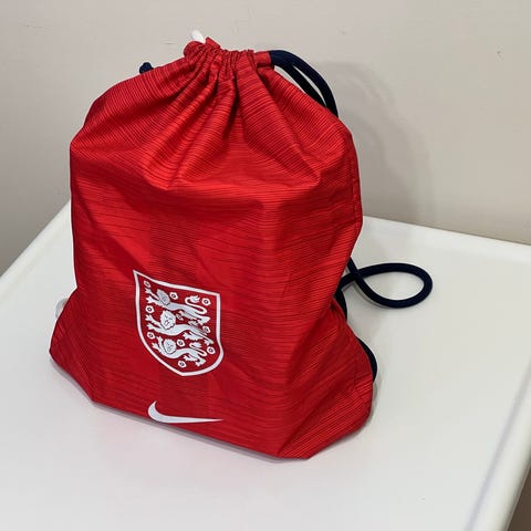 Nike Chelsea Gymposekk i blå farge med hvite snorer og logoer. Laget av lett materiale, egnet for sport og fritidsbruk. Har en liten glidelåslomme for oppbevaring av små gjenstander.