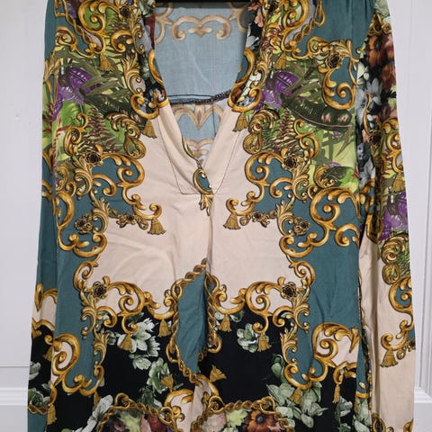Nydelig bluse/skjorte i lys beige farge med brunt blomsterprint.Meget pent og minimalt brukt.
