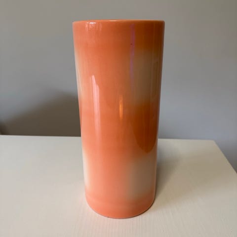 H&M Home stor keramisk vase med ribbemønster i beige farge. Vasen har en teksturert overflate og en sylinderformet design med smalere bunn. Egnet for dekorasjon og blomsterarrangementer.