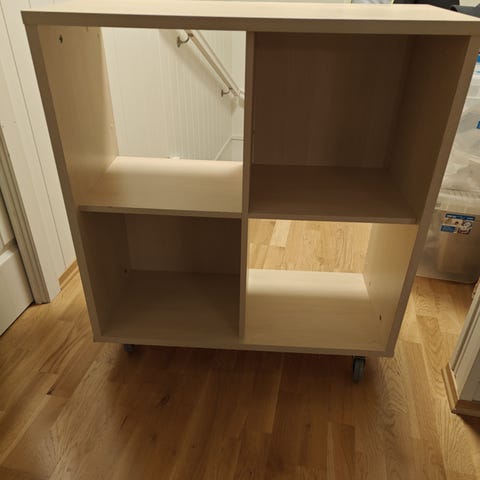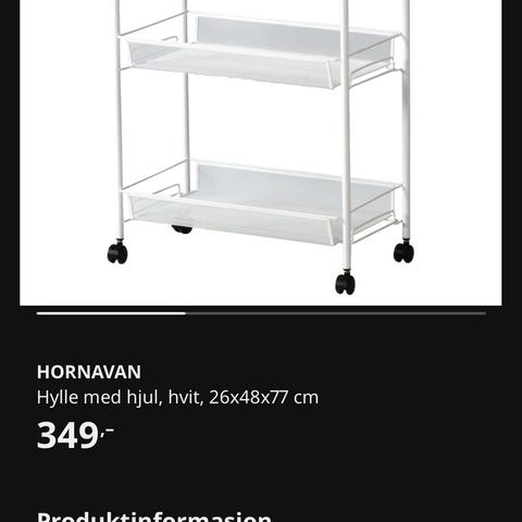 Liten hylle på hjuil, bra stand. Ett lite merke på øverste hylle - se bilde.