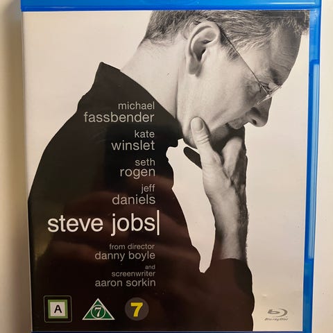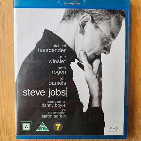 Blu-Ray-filmen Steve Jobs, med skuespillere Michael Fassbender, Kate Winslet, Seth Rogen og Jeff Daniels. Regissør: Danny Boyle og Aaron Sorkin. Språk: Engelsk. Format: Blu-Ray