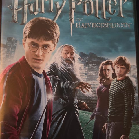 Harry Potter og Halvblodsprinsen DVD film med original cover. Inneholder filmen basert på den sjette boken i Harry Potter-serien, egnet for alle aldersgrupper.