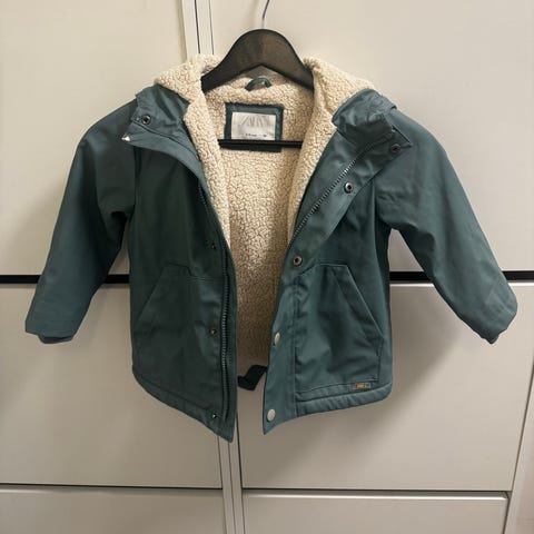 Super, teddyfôret regnkåpe/lang regnjakke fra Kuling. Pen og i god stand, fmed unntak av en rift i ermet som jeg oppdaget under fotografering. Håper noen kan fikse den og gi den et videre langt liv! Varer utover størrelsen sin.