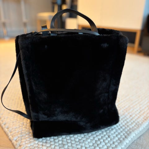 Faux fur totebag i gråbrun