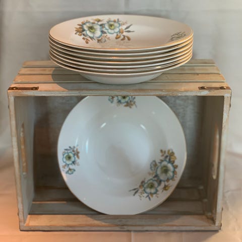 Fire tallerkner blå nyperose. 22 cm i diameter. Et par prikker fra produksjonen og noen bruksmerker, men fin tilstand. Selges samlet for 600 kr. Sendes mot tillegg for porto. Forhåndsbetaling med vipps. Bruker ikke Fiks ferdig.