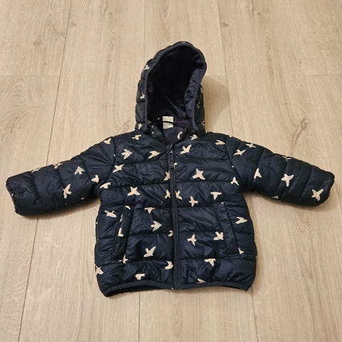 Fin, tynn dunjakke i str 80/86. Lite og pent brukt. Ingen skader eller flekker.