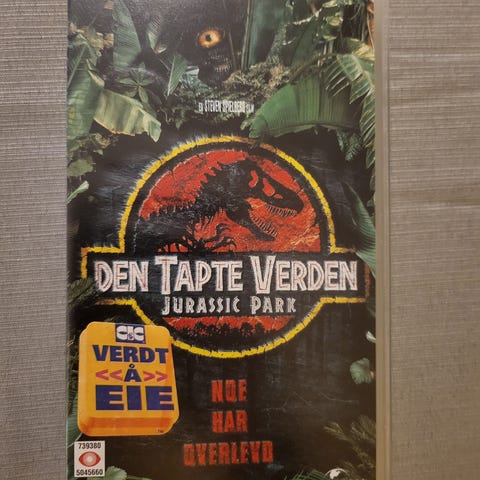 Universal Den Tapte Verden Jurassic Park VHS video.Inneholder original emballasje med norsk tekst. Produktet er en VHS-kassett basert på filmen Jurassic Park: Den Tapte Verden. VHS-format med stereo lyd.