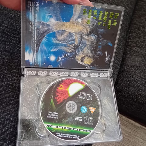 Godzilla vhs film med Matthew Broderick og Jean Reno. Inneholder filmen "Godzilla" med originalt omslag og bakside med informasjon om innhold og skuespillere.