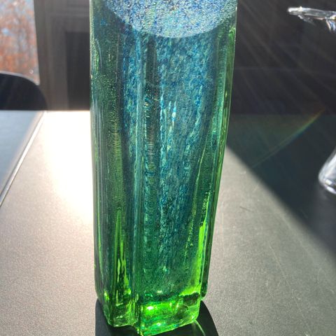 Artig og meget sjelden kattefigur i glass formgitt av Kjell Engman - en av de fremste kunstnere i Kosta Boda. Figuren er stilig, original og veldig dekorativ. Ingen slitasje - den sto bare i vitrineskapet for pynt.