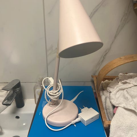 Rosa pent brukt skrivebordslampe fra IKEA. Lyspære må byttes. Se bilde for type lyspære.