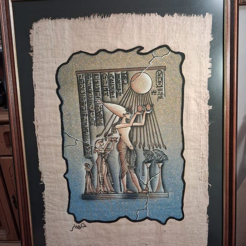 Et storslagent papyrus akvarell av faro Tutankhamon🤗