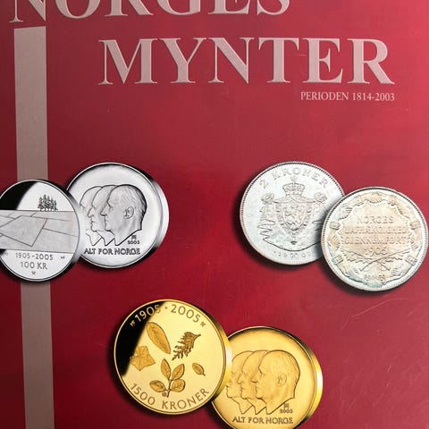 Norges Mynter myntsamling bøker som dekker perioden 1814 til 2020. Samlingen inkluderer detaljerte bilder og beskrivelser av norske mynter gjennom tidene, med fokus på historiske og moderne mynter. Bøkene er illustrert med bilder av mynter og norske flagg, og gir en oversikt over myntenes utvikling i Norge4 bøker i god stand. Sender gjerne. 2018 er solgt!