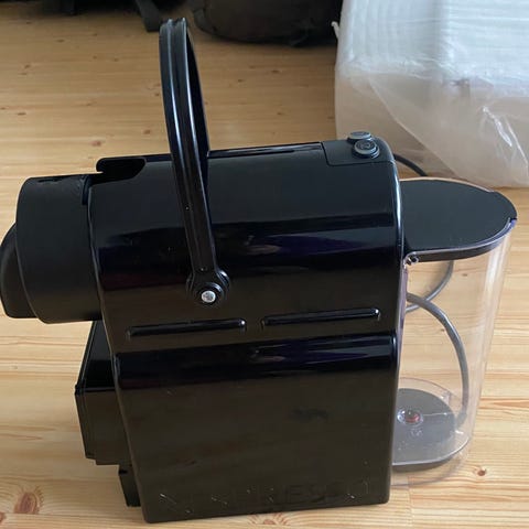 Nespresso Pixie kapselkaffemaskin i svart farge. Kompakt design med avtagbar vanntank og dryppbrett. Elektrisk kaffemaskin som bruker Nespresso-kapsler for enkel tilberedning av espresso og kaffe.
