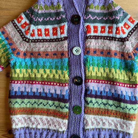 Selger for mor. Veldig skjønn og varm genser i myk ullgarn. Vil si den er str 5 år. Kanskje mer, men kommer an på.